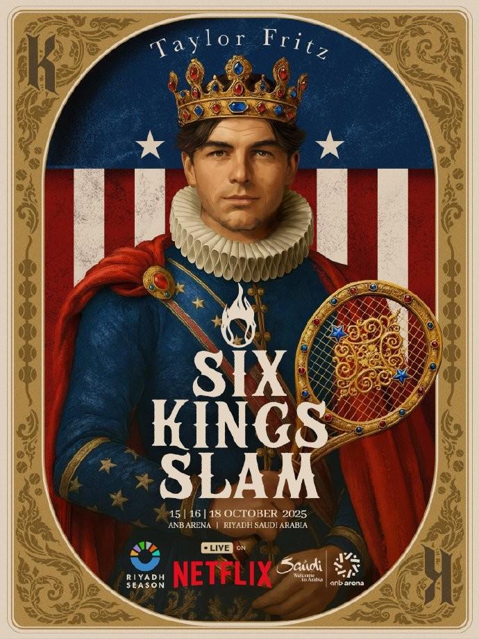9月5日,2025年网球“六王大满贯”单人海报公布,该项赛事将于10月15日-18日在沙特进行。今年的参赛阵容为辛纳、阿尔卡拉斯、德约科维奇、德雷珀、弗里茨、兹维列夫。比赛将于10月15日-18日进行,其中17日为休赛日,因为规定ATP选手不得连续三天出战表演赛。 ...