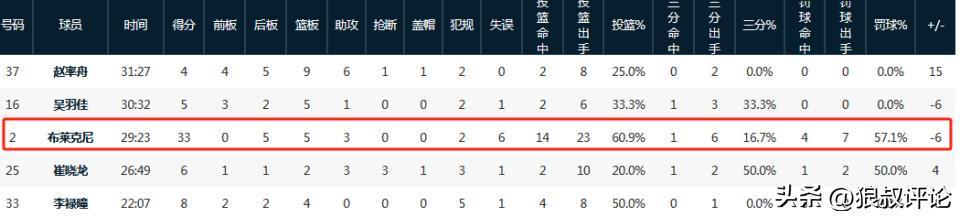 该赛季场均32分的布莱克尼在这场比赛中,只拿到11分,最终广东队127-96大胜江苏。